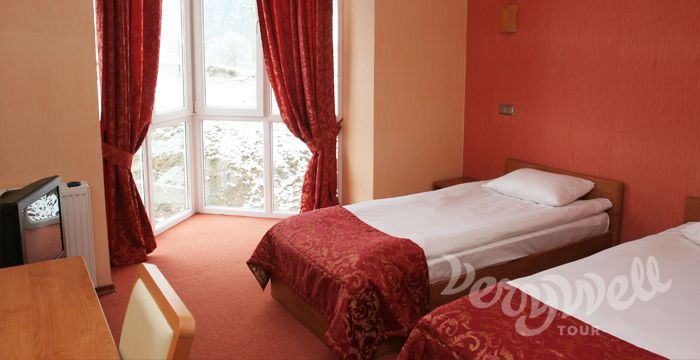 Размещение: корпус (5 этажей) отельного комплекса "Терем": проживание по 3-6 ребенка в комфортабельном номере со всеми удобствами, необходимой мебелью, новой сантехникой, спутниковым ТВ, панорамными окнами с видом на горы. Максимальное количество детей в смену - от 80 чел. до 180 чел., в зависимсоти от сезона. Отряды формируются по возрастной категории.