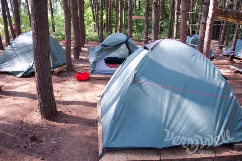 Проживание: лагерь построен из современных экологических материалов на основе традиционных скаутских методик. Невзирая на погружение в непосредственную близость к природе, здесь есть всё необходимое, с учетом всех норм, относительно комфортного отдыха: душ, санузел, чистая питьевая вода